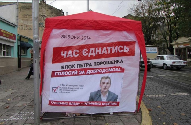 Незважаючи на те, що офіційно Добродомов був самовисуванцем, у своїй агітації він послуговувався брендом БПП.