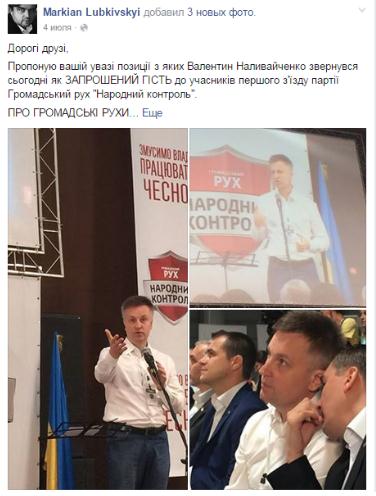 Знаково, що партію «Народний контроль» на з’їзді підтримав екс-голова СБУ Валентин Наливайченко, про що повідомляє навіть колишній прес-секретар силовика Маркіян Лубківський.