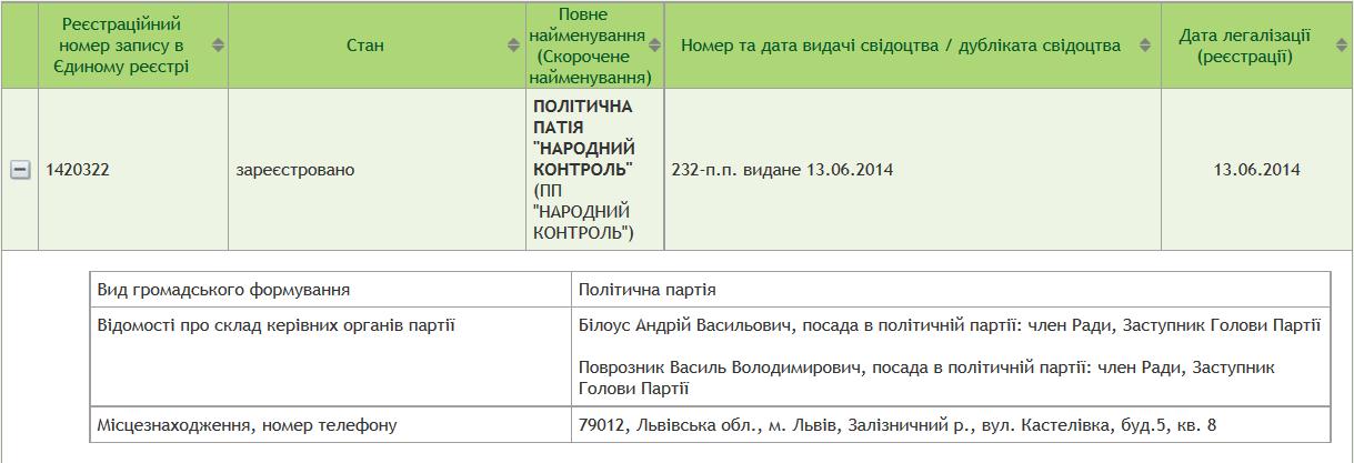 Варто зауважити, що офіс новоствореної партії «Народний контроль» зараз розташований за тією ж адресою, що і офіс Радикальної партії в час парламентських виборів (вул. С.Крушельницької 3).