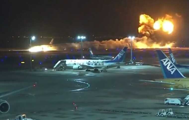 Після займання повітряне судно зіткнулося з літаком берегової охорони Японії. Палаючим літаком виявився рейс 516 Japan Airlines, який вилетів з аеропорту "Тітосе" о 16:00 і повинен був приземлитися о 17:40.