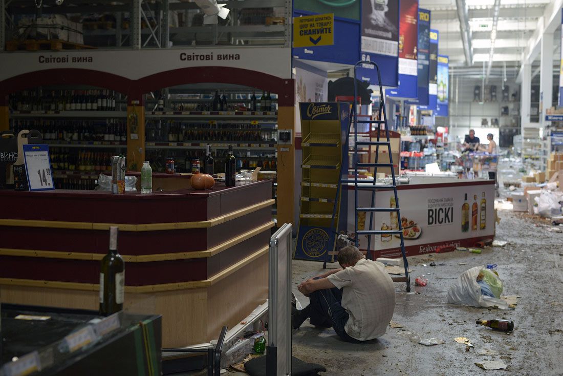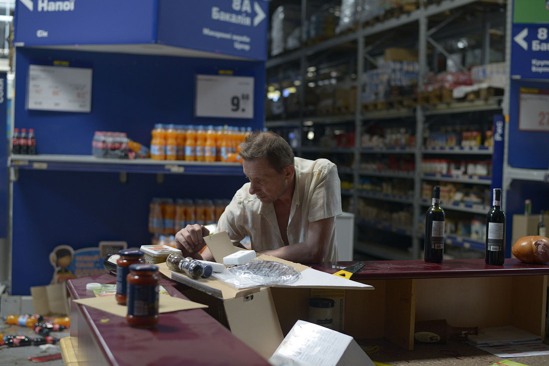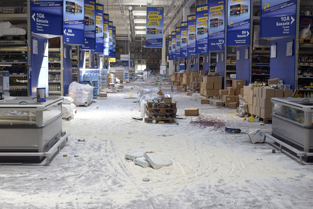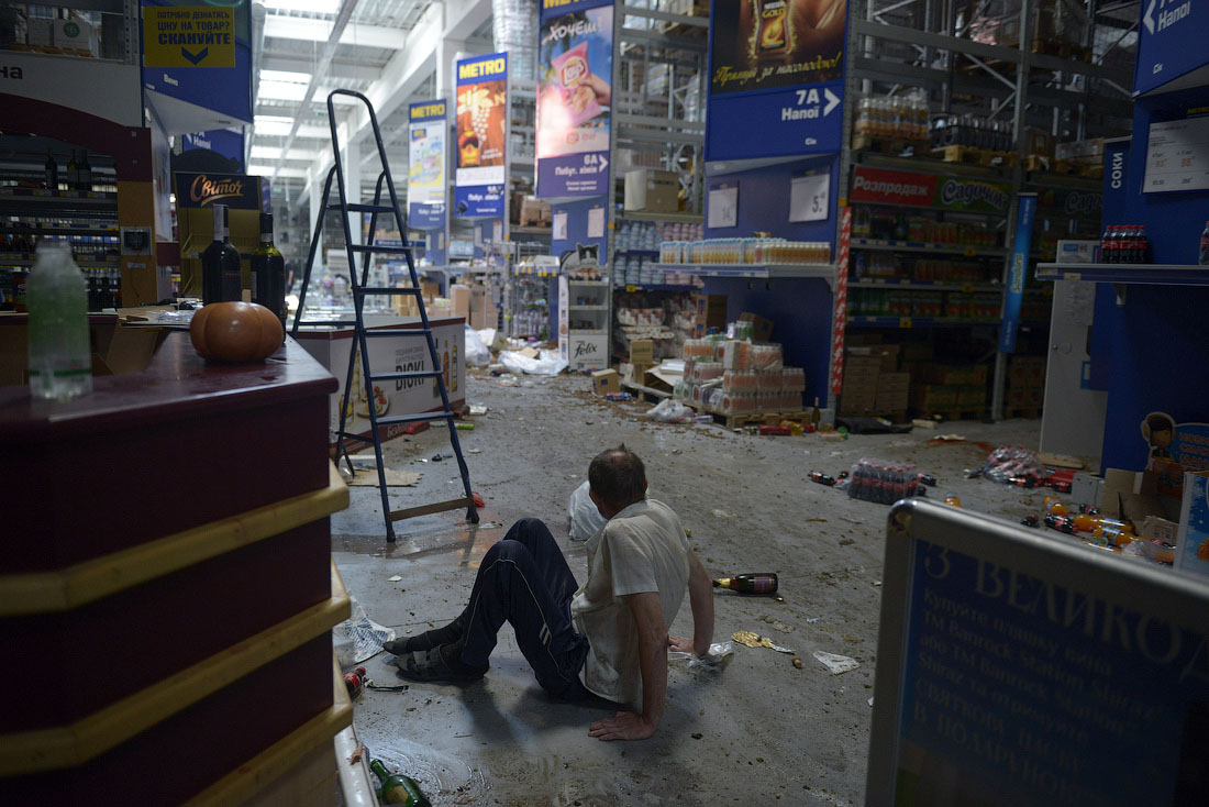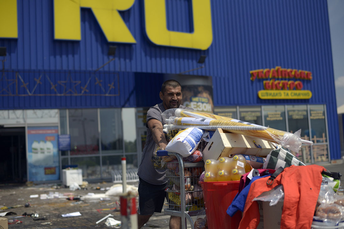 В Донецке разграбили покинутый после боя в аэропорту магазин Metro. 3 дня назад магазин остался без охраны и продавцов, чем и воспользовались местные жители. Магазин находится всего в километре от аэропорта Донецка, который сейчас контролируют украинские военные, эта местность простреливается снайперами, поэтому ополченцы туда не заходят, а вот местные времени зря не теряют.