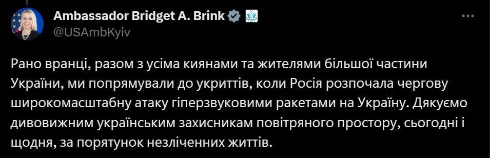 Співробітники посольства США через ракетну атаку на Київ були змушені спускатися в укриття