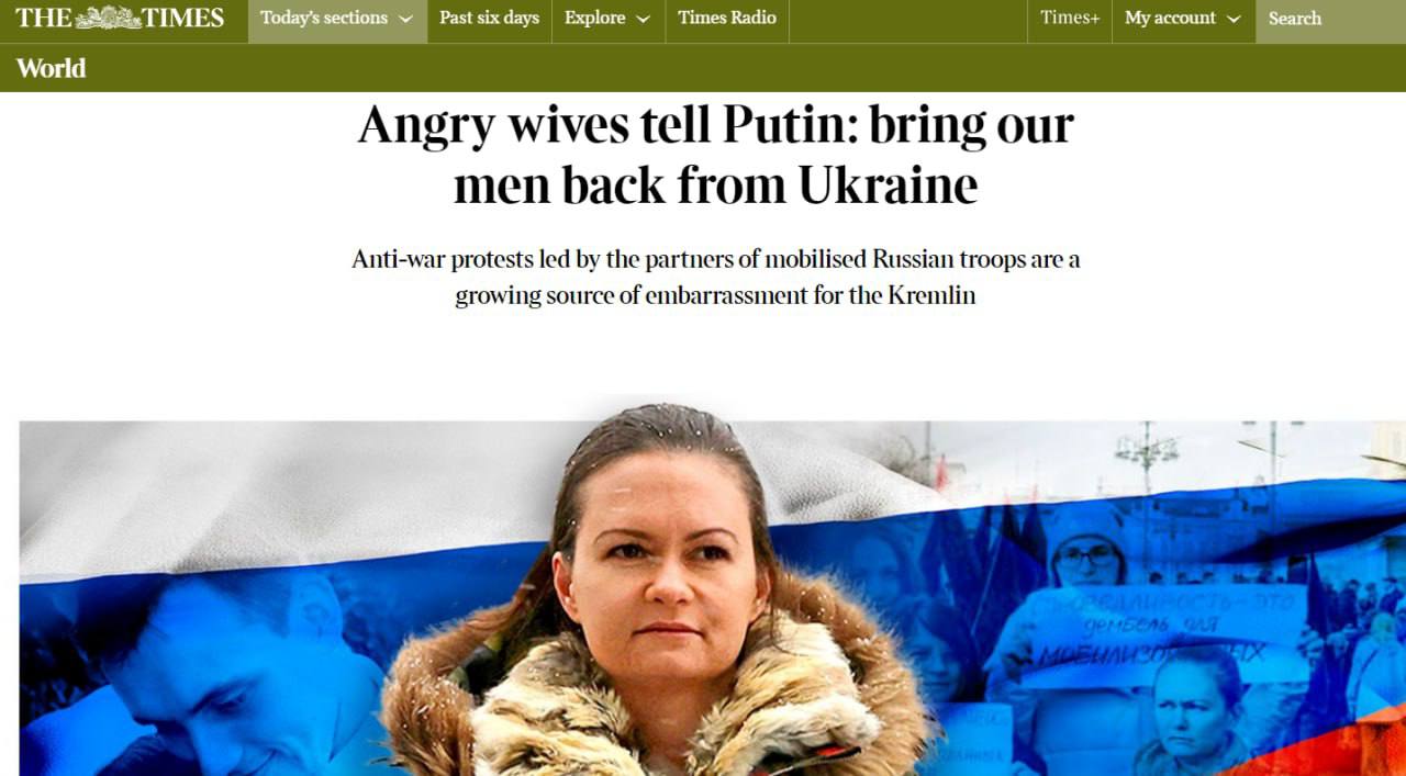Антивоєнні протести, очолювані дружинами мобілізованих російських військовослужбовців, все частіше стають "скалкою у дупі" для Кремля, пише The Times.
