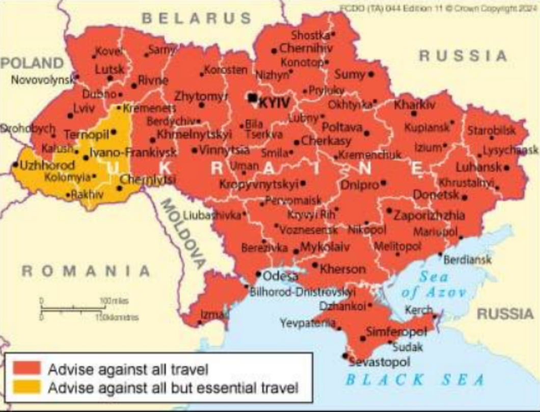При цьому Львівську область у Британії вважають небезпечною.