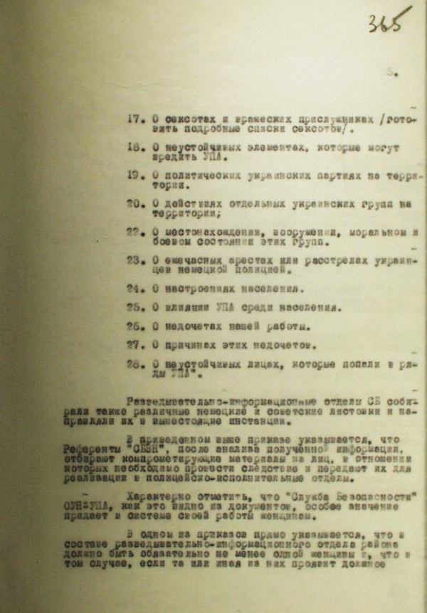16. Про ворожу розвідку на території, яка надає послуги ворожим організаціям і німецькій поліції.