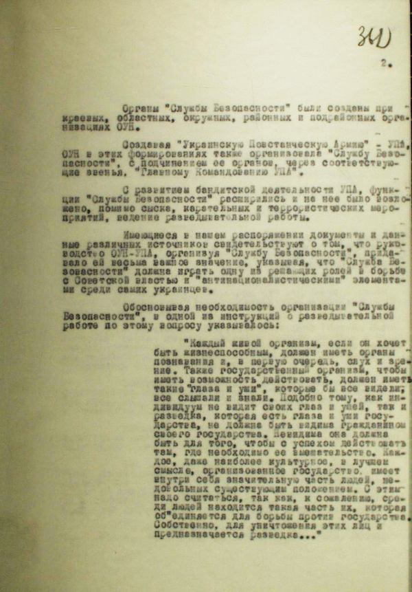 В архівних фондах Служби зовнішньої розвідки України виявлено матеріали, які свідчать про ґрунтовний підхід керівників національно-визвольного руху до організації і здійснення розвідувальної діяльності у період існування Української повстанської армії під час Другої світової війни.
