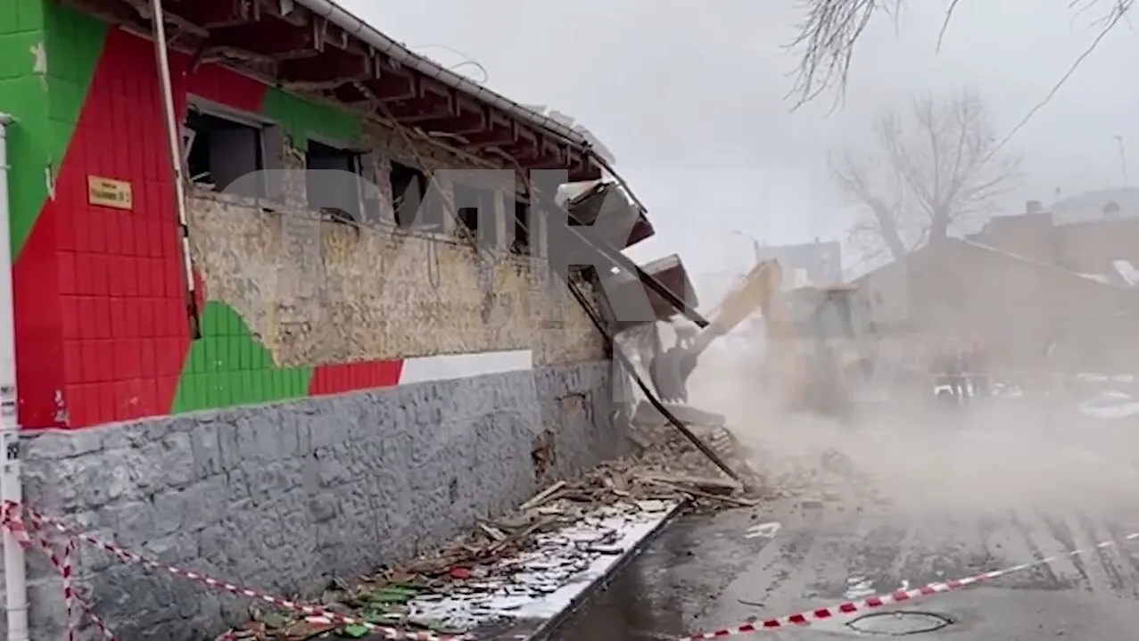 На опублікованому відео можна побачити, як спецтехніка зносить стіни знищеної окупантами будівлі.