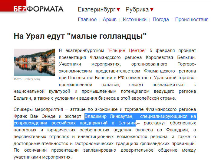 Мало того, у 2014 році делегація російської Республіки Татарстан проходила навчання у Бельгії, вивчаючи досвід з розвитку автомобільного та хімічного кластерів. Члени російської делегації, зокрема, представники Мністерства економіки Татарстану і підсанкційного Татнефтехімінвест-холдингу зустрічались і обмінювалися досвідом з Володимиром Лінкаутаном, адвокатом Михайла Пархомчука.