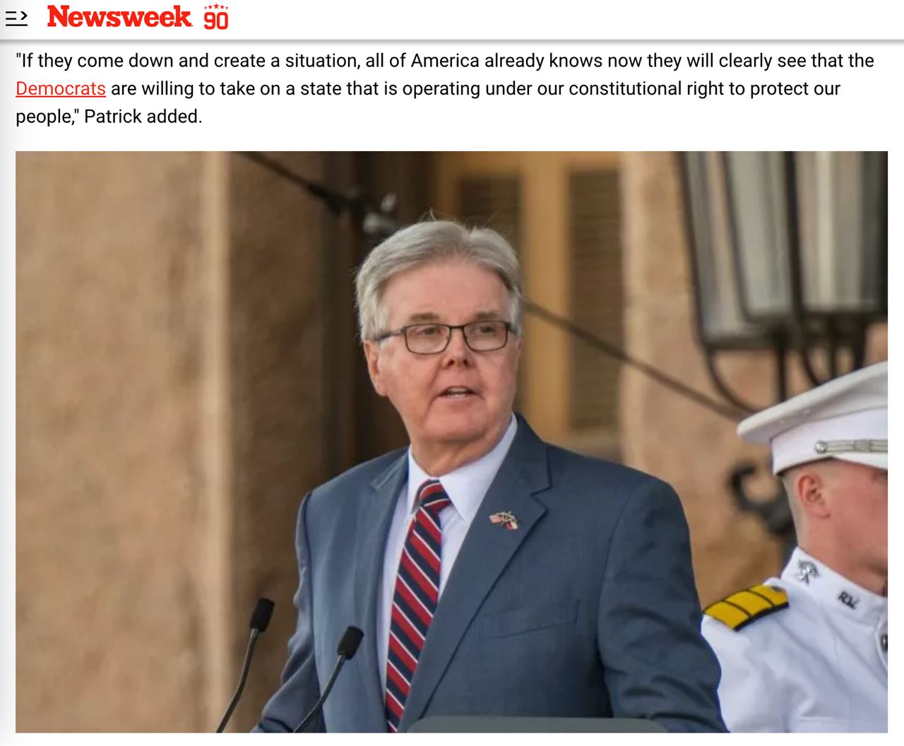 Якщо вони прийдуть і створять ситуацію, вся Америка вже знає, тепер вони ясно побачать, що демократи готові протистояти штату, який діє відповідно до нашого конституційного права захищати наш народ», - сказав Патрік в ефірі Fox News.