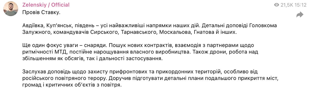 Крім того, обговорили снаряди: пошук нових контрактів, постачання Заходу, нарощування власного виробництва. Збільшення обсягів виробництва дронів та дальності їхнього застосування.