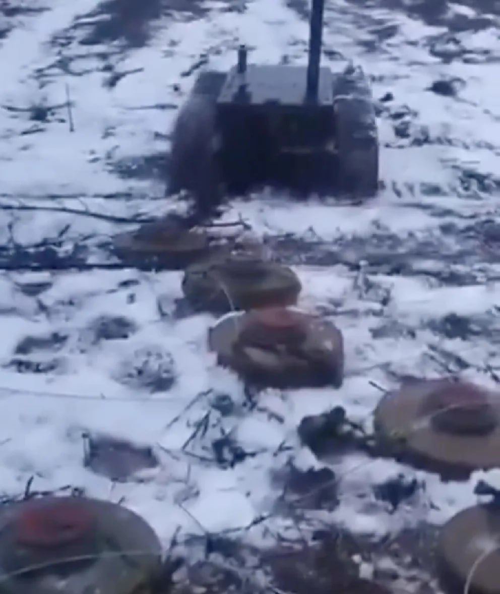 - невеликі наземні дрони на гусеничному ходу, що укладають радянські міни ТМ-62.
