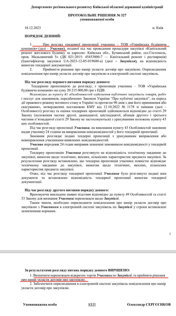 Двічі найнижчу пропозицію давала компанія «Українська Будівнича Компанія» — 20 млн 215 тис грн в тендері від 17 січня. Замовник навіть визнав її переможцем, однак невдовзі це рішення скасували, а тендер відмінили.