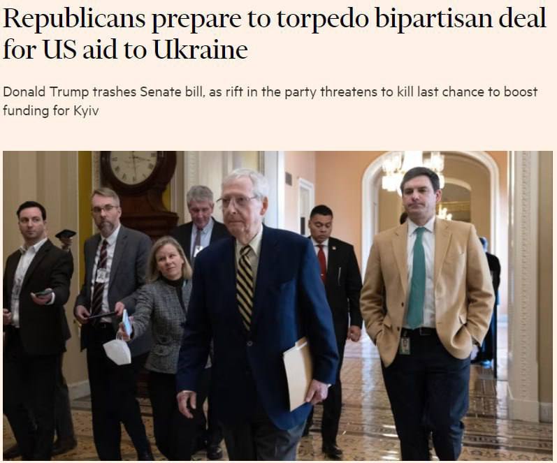 При цьому видання повідомляє, що станом на ранок вівторка принаймні 21 сенатор-республіканець оголосив, що проголосує проти законопроєкту, що означає, що він буде провалений, і це "ознаменує собою останній удар по традиційним республіканським зовнішньополітичним яструбам і політичним прагматикам, які підтримали двопартійний прорив", включаючи Мітча Макконнелла, лідера партії в Сенаті. У понеділок той закликав республіканців підтримати пакет, який допоможе США й їхнім союзникам "відновити перевагу" над "авторитарною віссю, що виникає" в Москві, Пекіні та Тегерані.