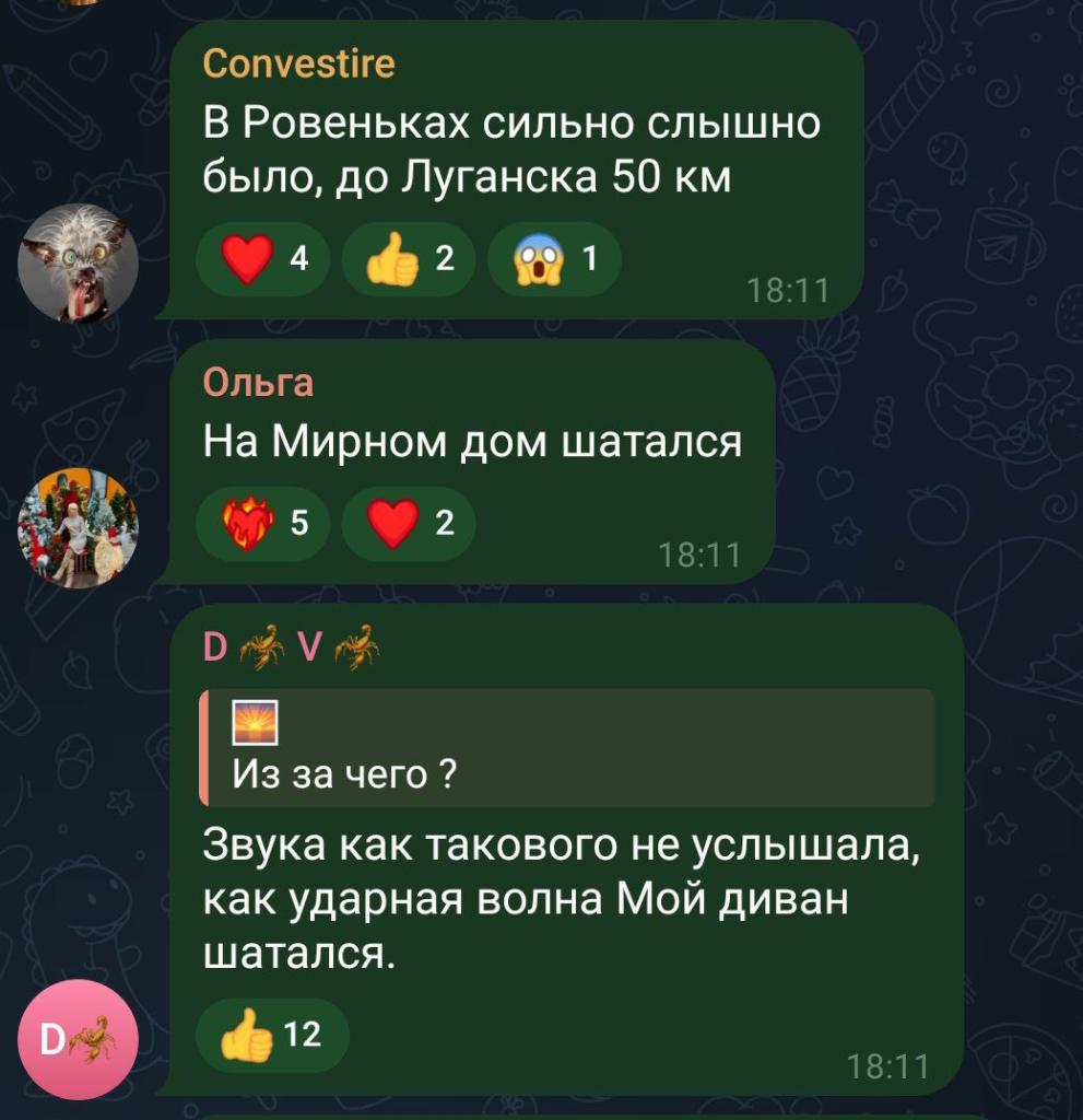 Як пишуть деякі жителі Луганщини, звуку вибуху не чути, але була дуже потужна вибухова хвиля.