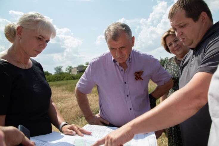 Володимир Константинов (в центрі) під час поїздки в с. Гришине. Фото з сайту «Госсовєта Криму»