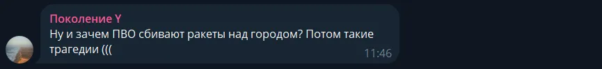 Жителі Бєлгорода обурені, що через роботу протиповітряної оборони над містом уламки ракет падають на мирних жителів. У зв’язку з цим росіяни порекомендували своїм військовим не збивати ракети над житловими кварталами та не влаштовувати трагедії.