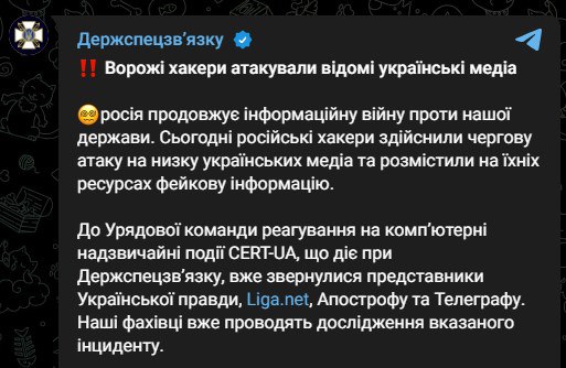 Теги: кібератакиКибератакителеграфУкраинская ПравдаСмиЗМІХакерыхакери