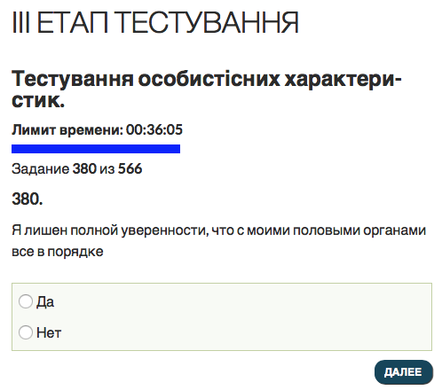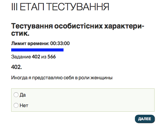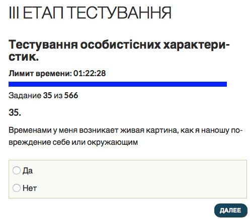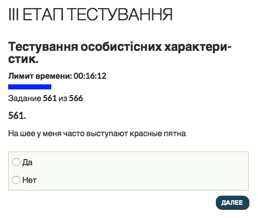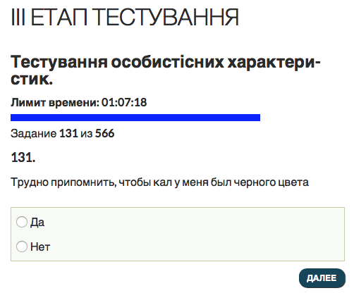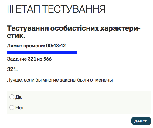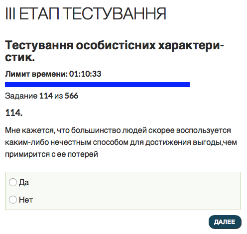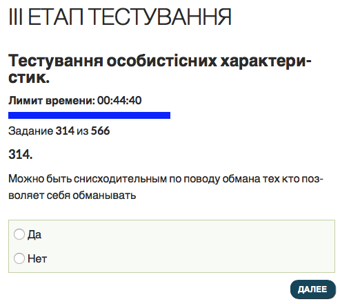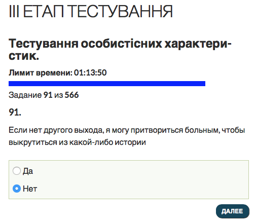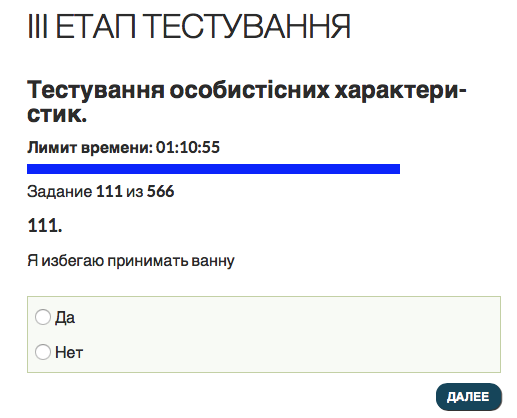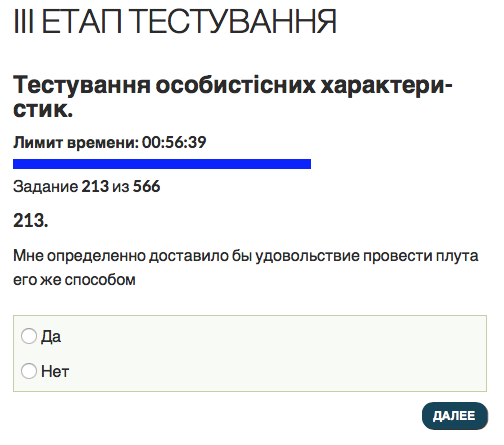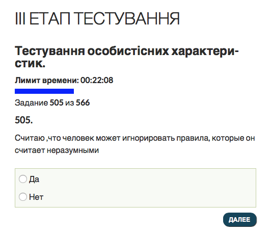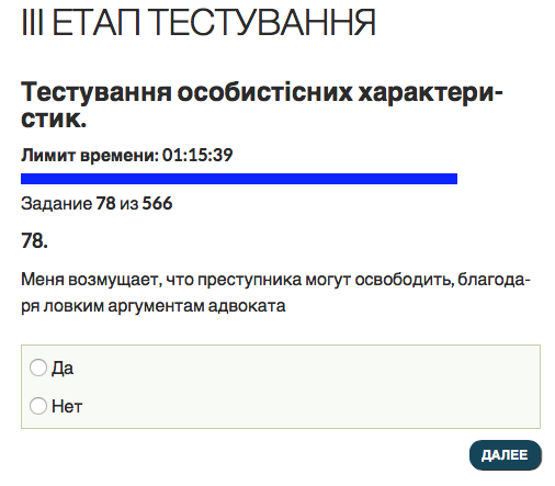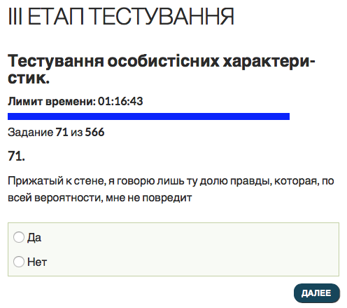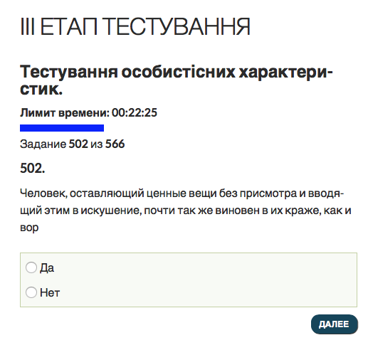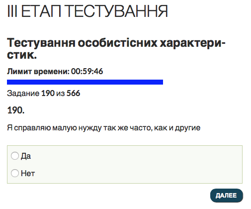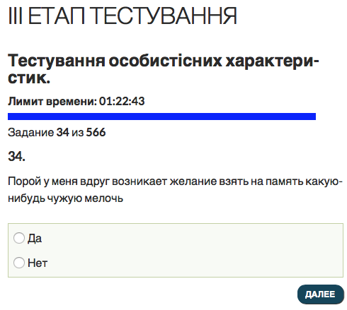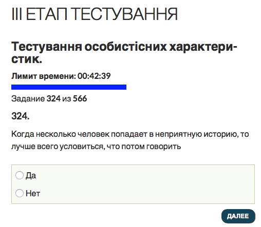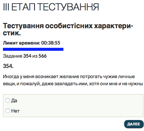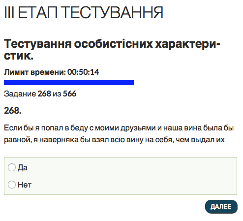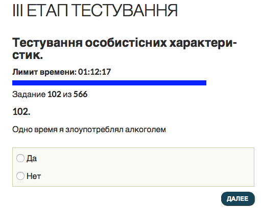 Группа поддержки проведения тестов создала Интернет-ресурс, позволяющий претендентам и всем желающим ознакомится с примерами вопросов и пройти предварительный тест по каждому с этапов. «Прокурорская правда» решила ознакомится с вопросами психологического теста и рассказать чего ждать от тестирования личностных характеристик.
