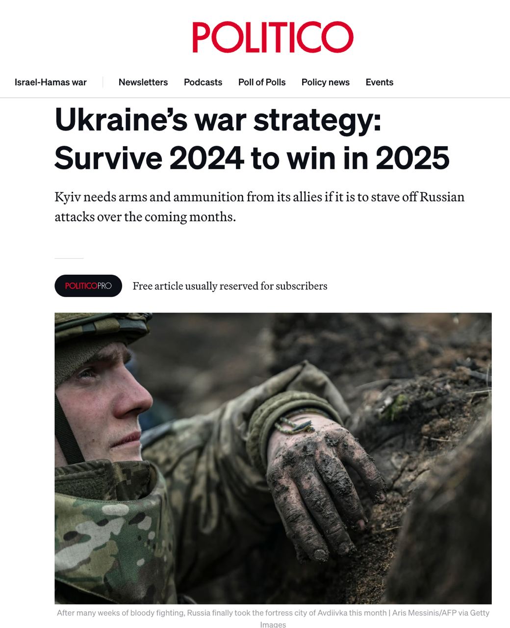 Військова стратегія України: вижити у 2024 році, щоб перемогти у 2025, - Politico