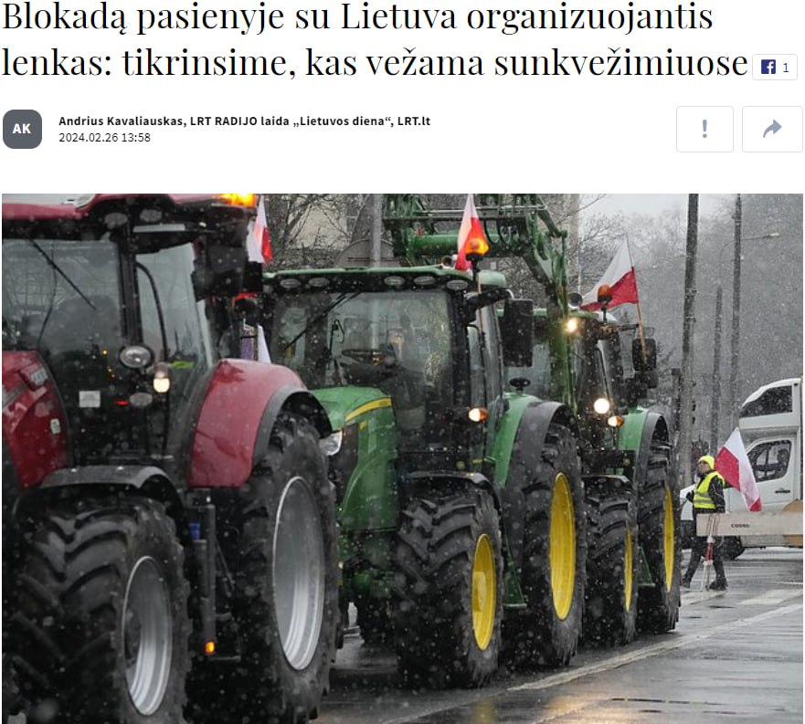 Видання LRT пише, що у п’ятницю польські фермери планують заблокувати контрольно-пропускний пункт на кордоні з Литвою. Вони зупинятимуть і перевірятимуть усі транспортні засоби, які можуть перевозити українське зерно.