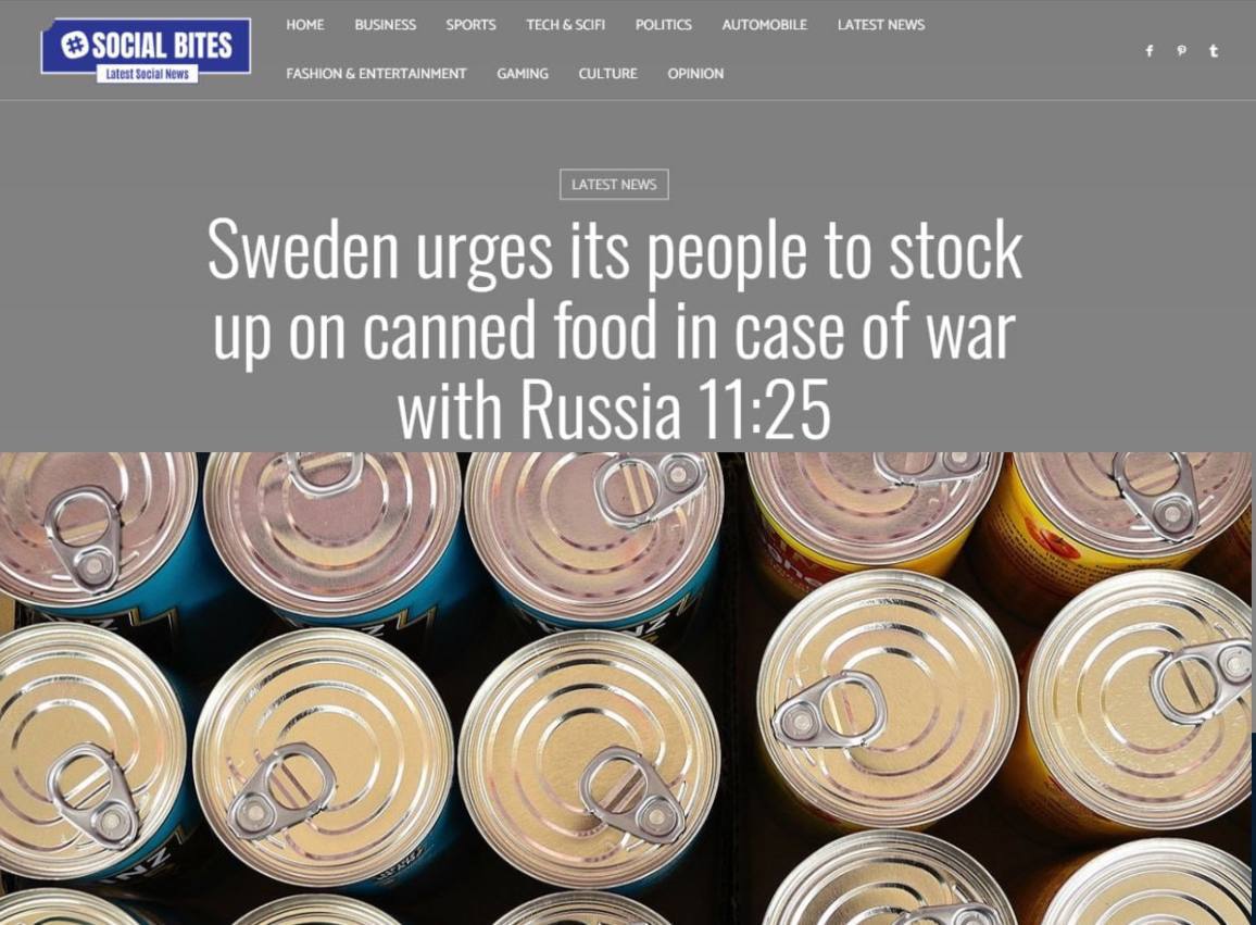 Швеція закликає населення запасатися консервами на випадок війни з Росією, — Social Bites