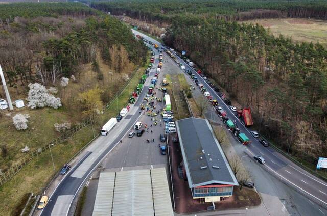 Видання RMF24 пише, що польські фермери блокують кордон із Німеччиною у двох населених пунктах Свєцко та Губінек. Через це на кордоні утворилися кілометрові черги.