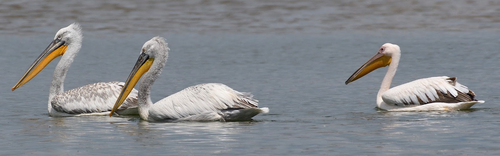 Кучеряві та рожевий пелікани. Фото Олександра Настаченка