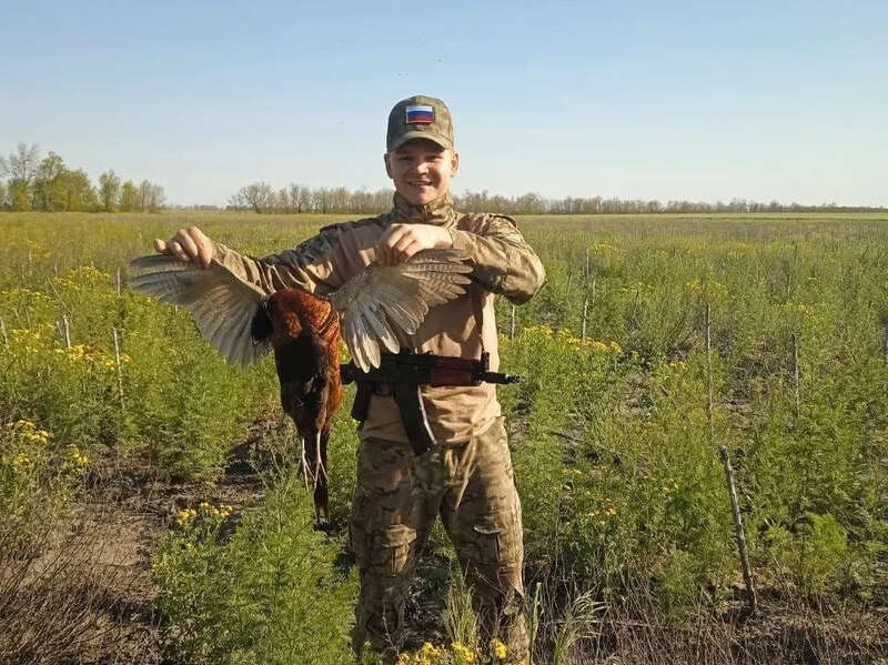 На фото, яке організація UAnimals, отримала від учасниці волонтерської спільноти, російський окупант хизується мисливським трофеєм – застреленим фазаном звичайним.