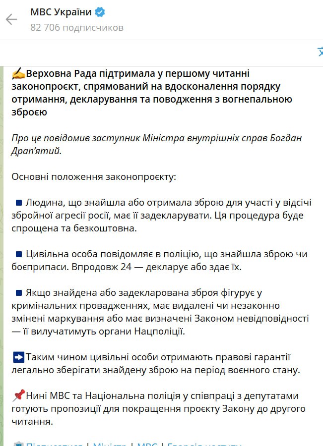 – знайдену чи отриману зброю потрібно буде задекларувати – це буде просто та безкоштовно;