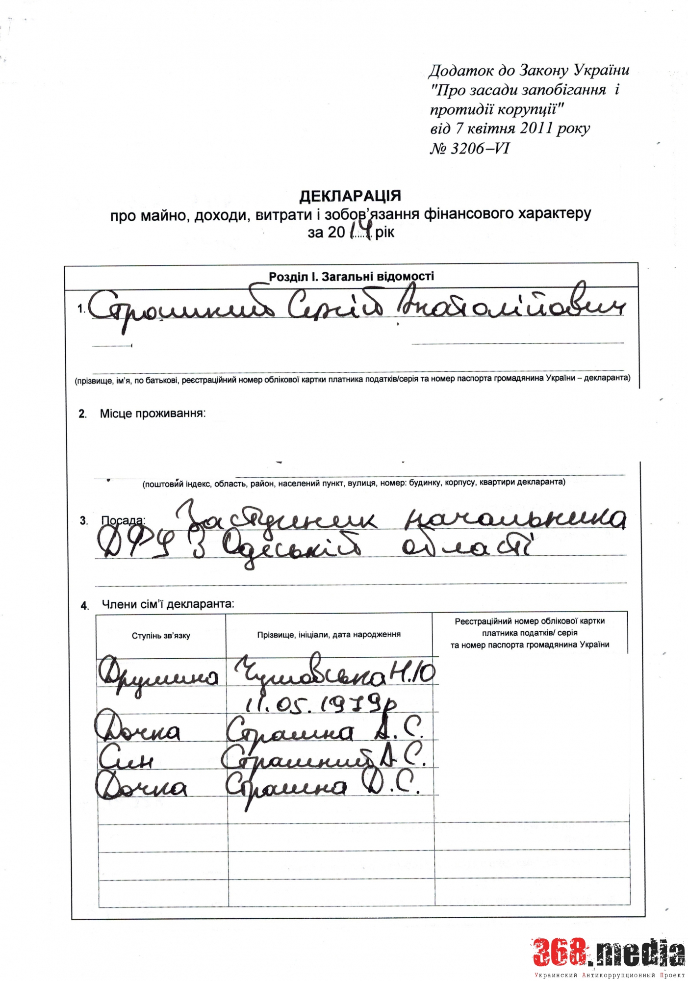 Депутат Одесского горсовета от фракции «Доверяй делам» Сергей Страшный, работая заместителем главы ГФИ региона, женат на нотаурисе-миллионере и владеет катером. Соответствующие сведения присутствуют в его налоговой декларации.