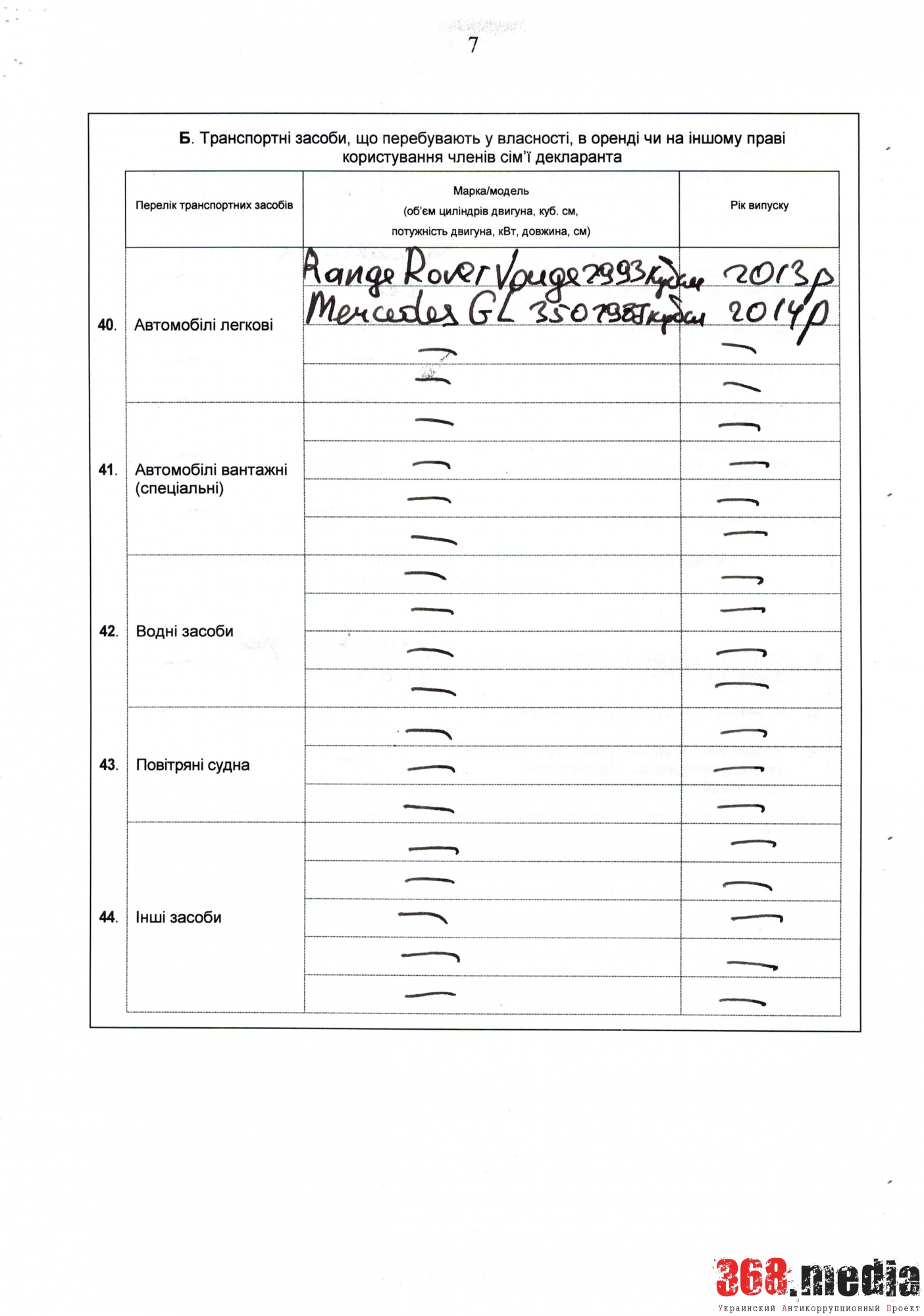 Кроме того, супруга Страшного купила себе Range Rover Vogue 2013 года и Mercedec GL 350 2014 года. На ее банковском счете находится еще 1,16 млн. гривен, а содержание имущества обошлось в 543 тыс. гривен!