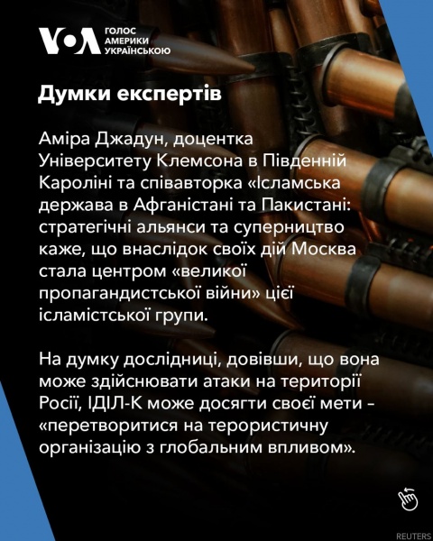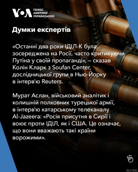 Тим часом, варто нагадати, що з’явилася і заява ІДІЛ у публікації інформагентства Aamaq, в якій угруповання взяло на себе відповідальність за стрілянину 22 березня у концертному залі у Підмосков’ї.