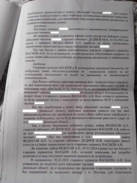 Відповідь, отримана від Донецького зонального відділу Військової служби правопорядку Міноборони, пояснювала, що бійця посадили до підвалу у зв’язку з повітряною тривогою, коли військовослужбовцям було рекомендовано перебувати в безпечних місцях через імовірність ракетного удару по тій місцевості.