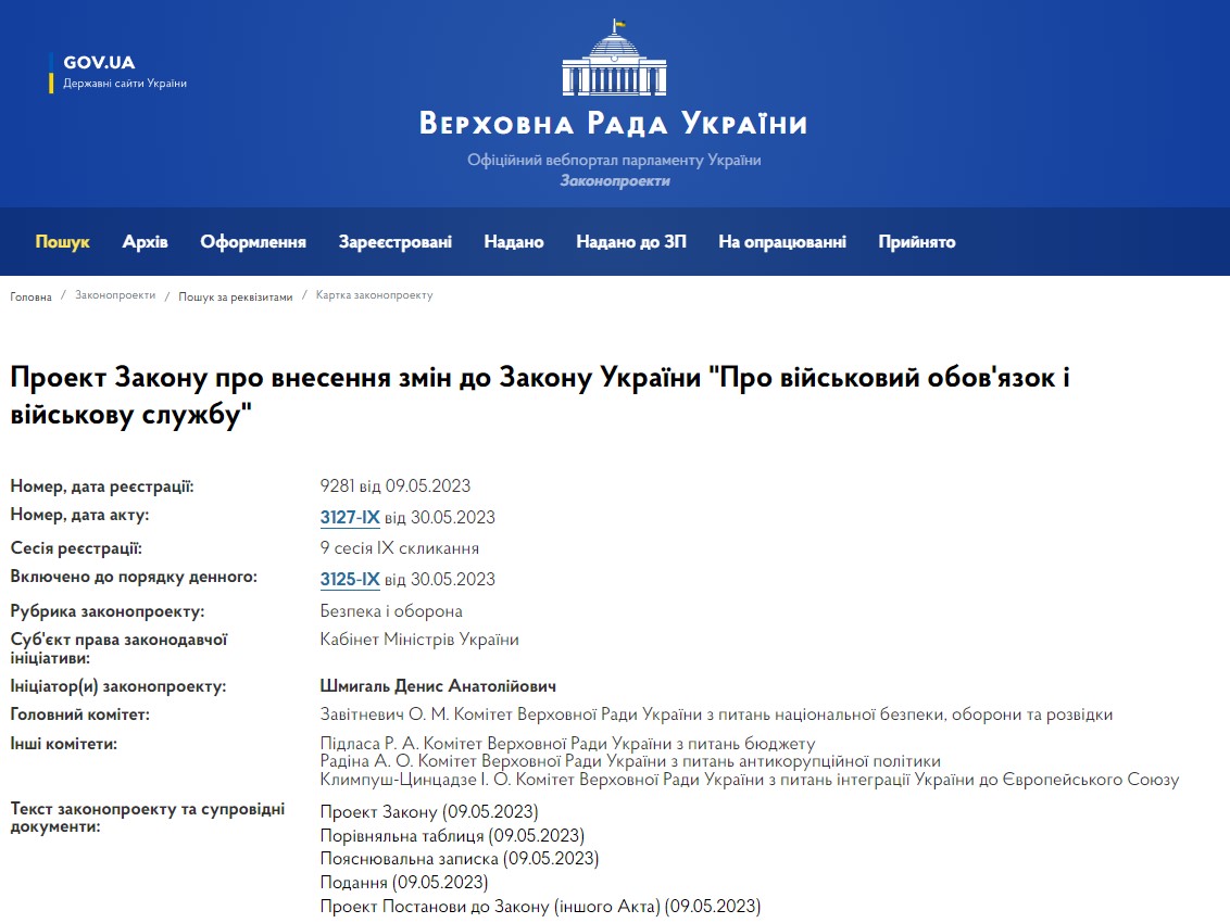 Про це йдеться з посиланням на картку закону на сайті ВР.