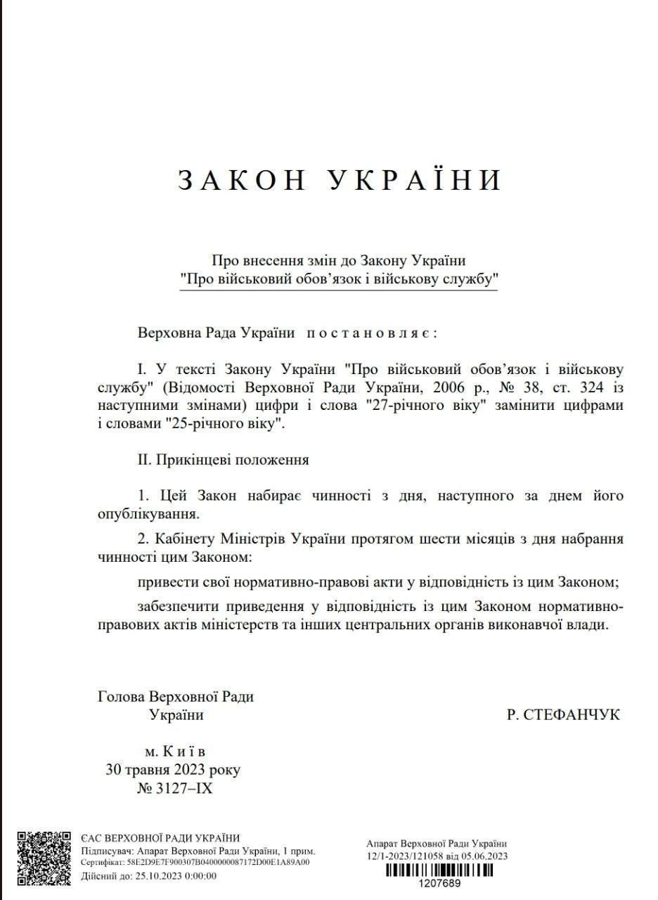 Зеленський підписав закон про мобілізацію з 25 років замість 27