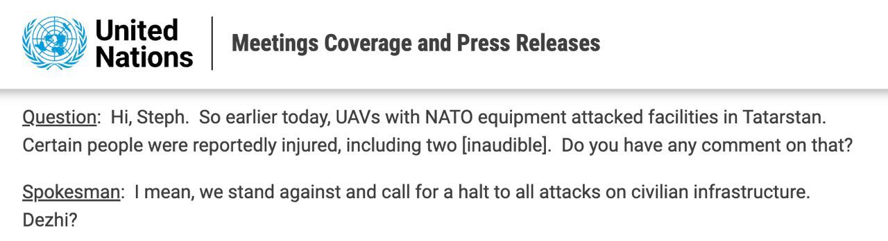 Теги: ВПКООНСтефан ДюжаррикТатарстанБПЛААтакаРосіяРоссияГУР МО