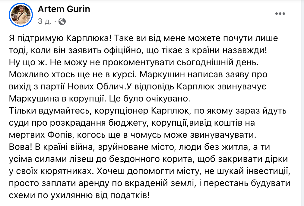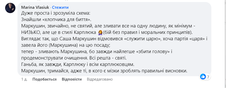 Буквально через годину після публікації Маркушина з’явилася відповідь Карплюка.