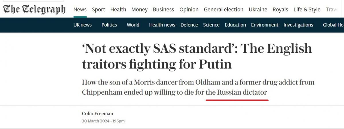 Словом "диктатор" тепер титулує Путіна і британська газета The Telegraph.