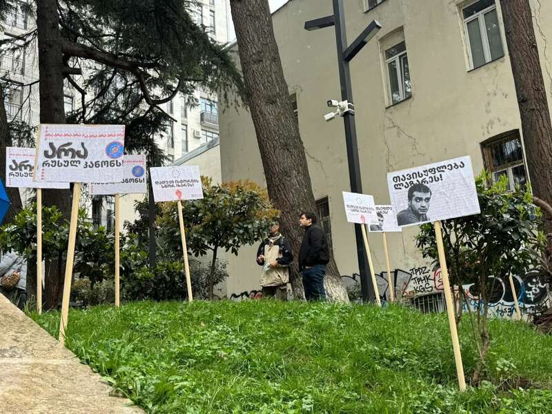 Ще одна акція розпочалась біля будівлі Тбіліського міського суду, який сьогодні, 8 квітня, може винести вирок Лазаре Грігоріадісу, затриманому учаснику протестів проти законопроєкту «про іноагентів» минулого року. Чоловік звинувачується у нападі на поліцейських під час масових демонстрацій, йому загрожує 11 років в’язниці.