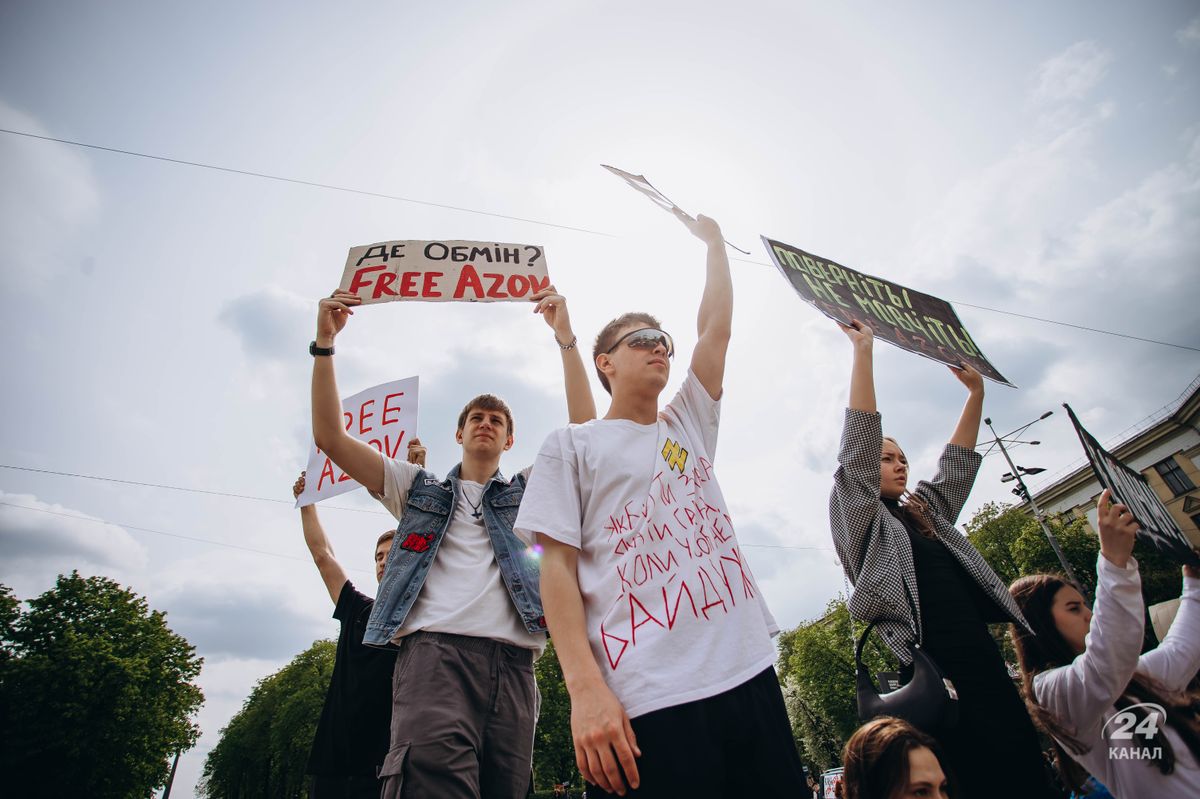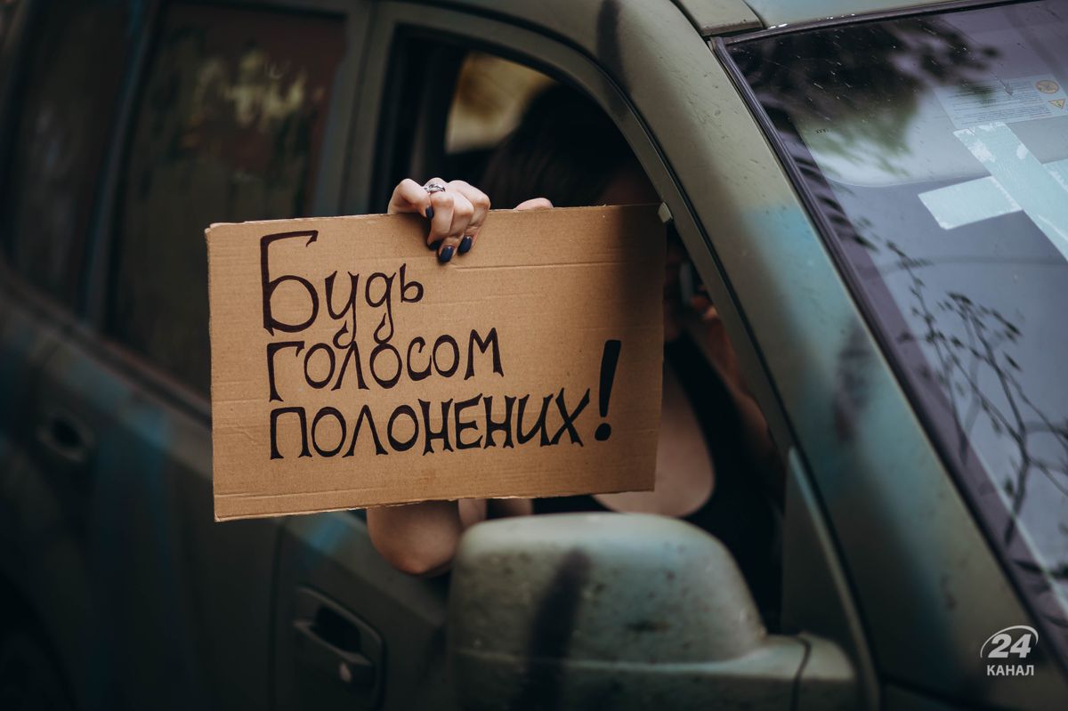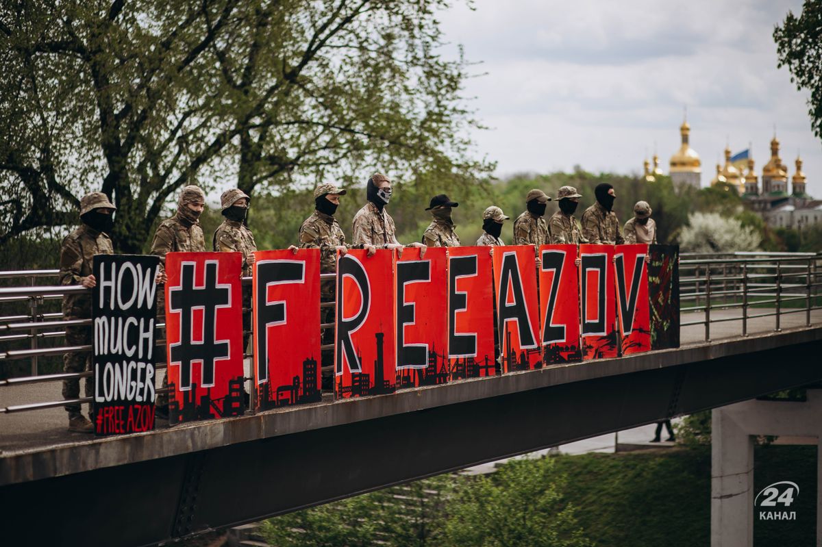 Люди тримали плакати з надписами "Твоя мовчанка може стати ганьбою", "Їх чекають вдома", "будь голосом полонених!", "Поверніть захисників Маріуполя – живих та полеглих" тощо.