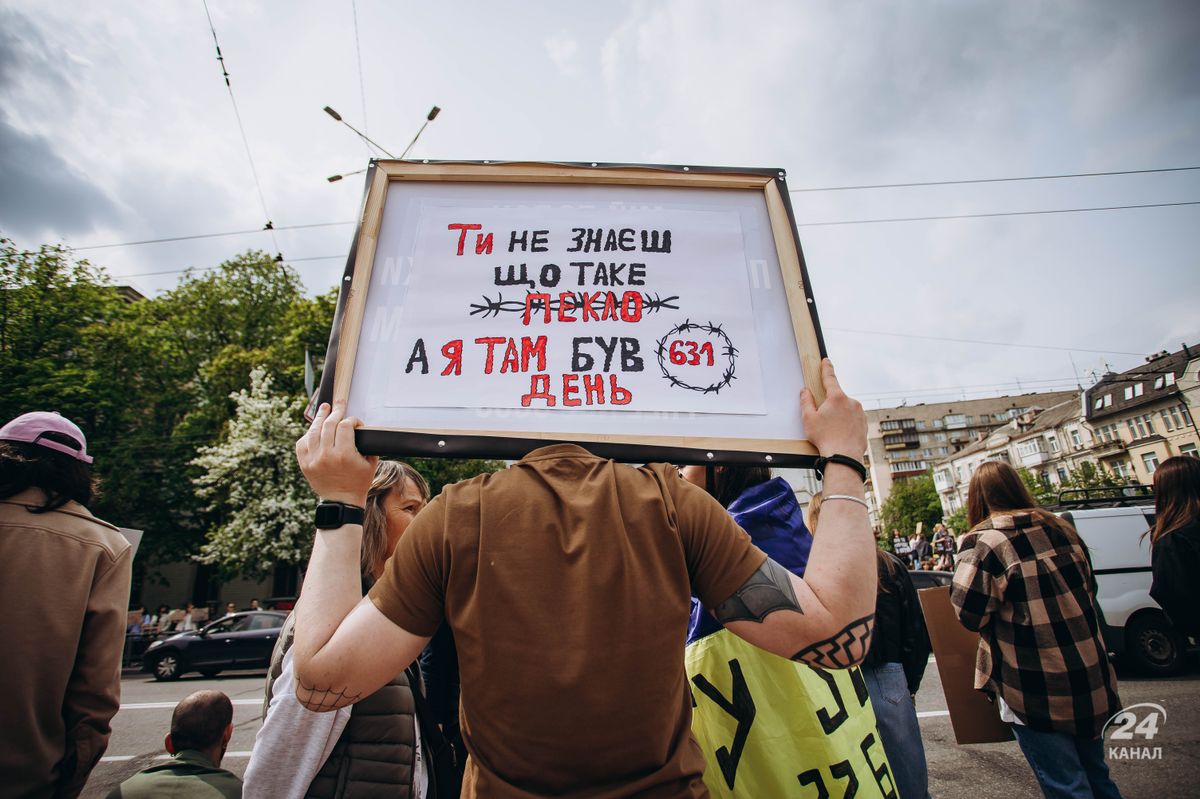 "Завжди прихожу підтримати побратимів, які ще залишаються в полоні. Нас повинні чути. Люди повинні знати, яке там пекло насправді. Там в людей зникає віра", – сказав він.