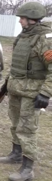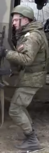 Що ж до третього військового, який, ймовірніше за все, належить до структури ЗС РФ/Росгвардії, то він має набагато краще екіпірування, особистий ніж, що прикріплений до форми у районі ключиці, а також характерний шарф-арафатку, яким закриває своє обличчя.