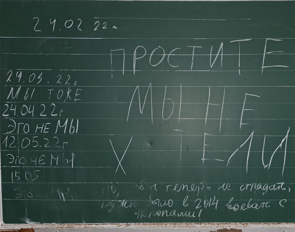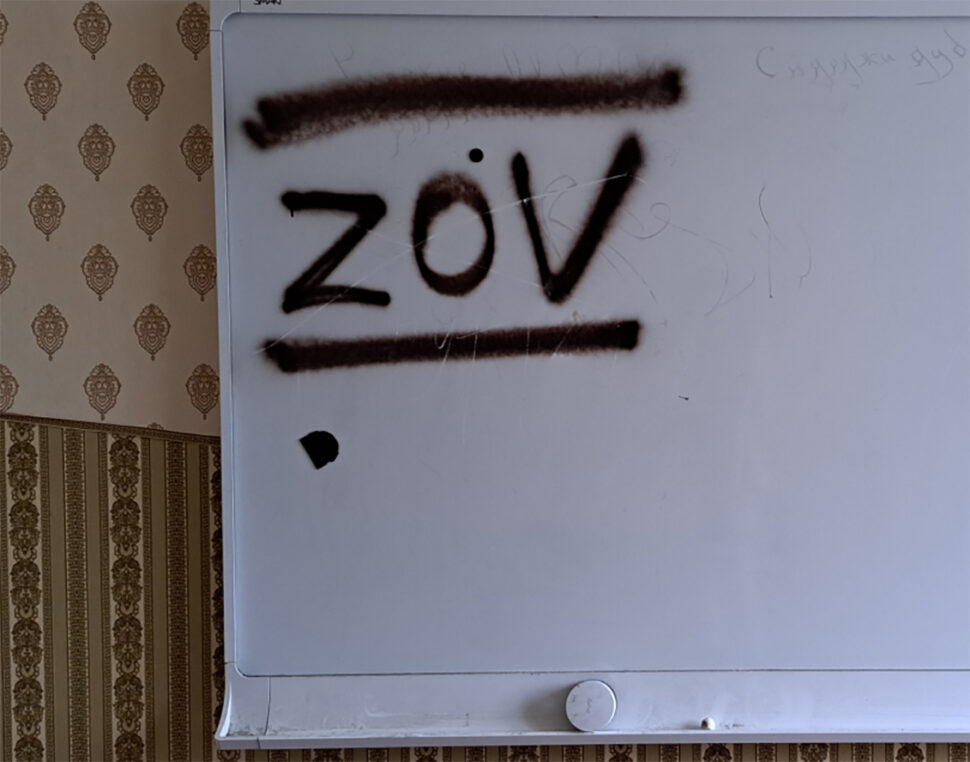 Ознаки перебування російських військових в школі у Капитолівці.Джерело: Truth Hounds, квітень 2023 р.