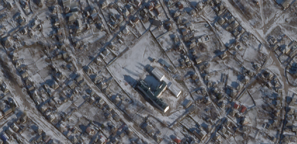 На карті позначені основні місця у Капитолівці, де розташовувалися військові РФ та т.зв. “ЛНР”. Джерело: супутниковий знімок Planet Labs, 15 травня 2022 р.