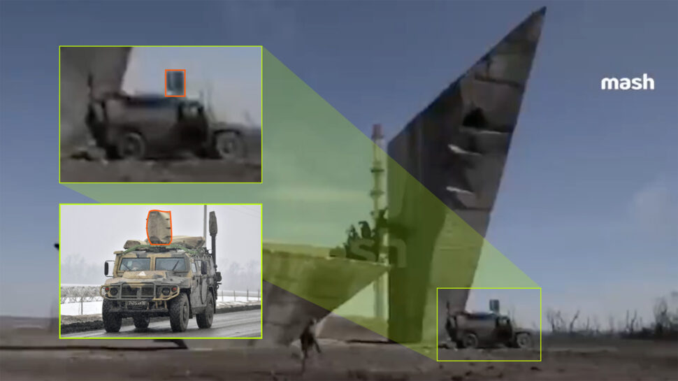 Крім того, на іншому кадрі того ж відеосюжету Telegram-каналу Mash видно систему “Язиковєд” на даху “Тигра-М”, яку частково помітно на відео з Володимиром Вакуленком.
