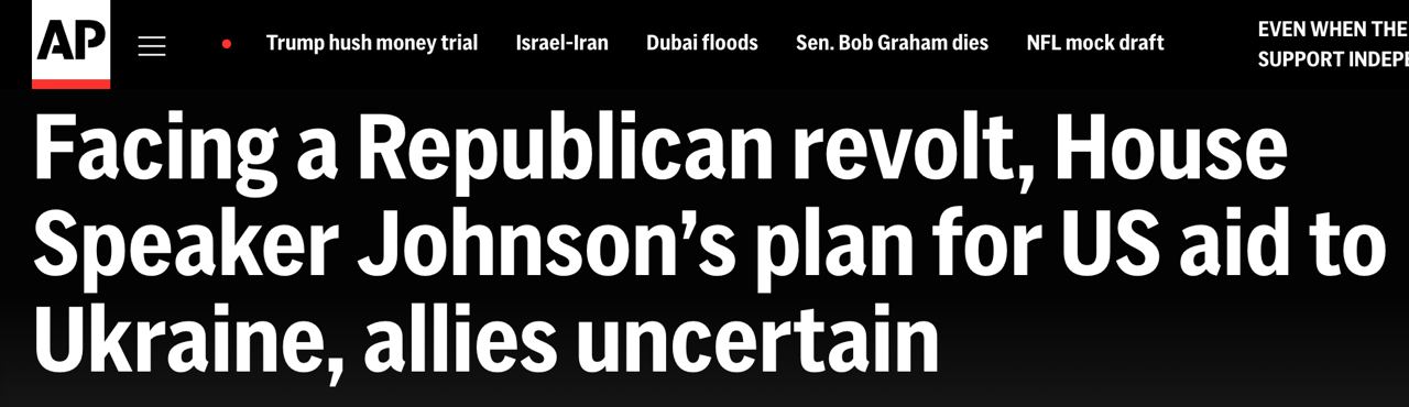 Associated Press, із посиланням на республіканців, пише, що голосування за допомогу Україні в Палаті представників може не відбутися цього тижня як планувалося.