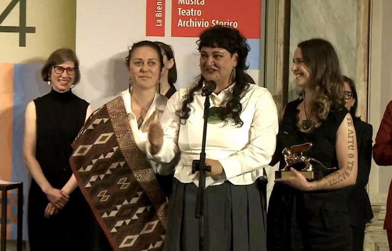 "Золотого лева", яким нагороджують найкращого учасника міжнародного проєкта, отримала артгрупа Матаахо - колектив, що складається з художниць маорі з Нової Зеландії.