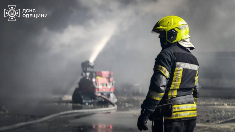 На Одещині третій день поспіль триває ліквідація пожежі, що виник унаслідок удару росіян по агропромисловому терміналу.