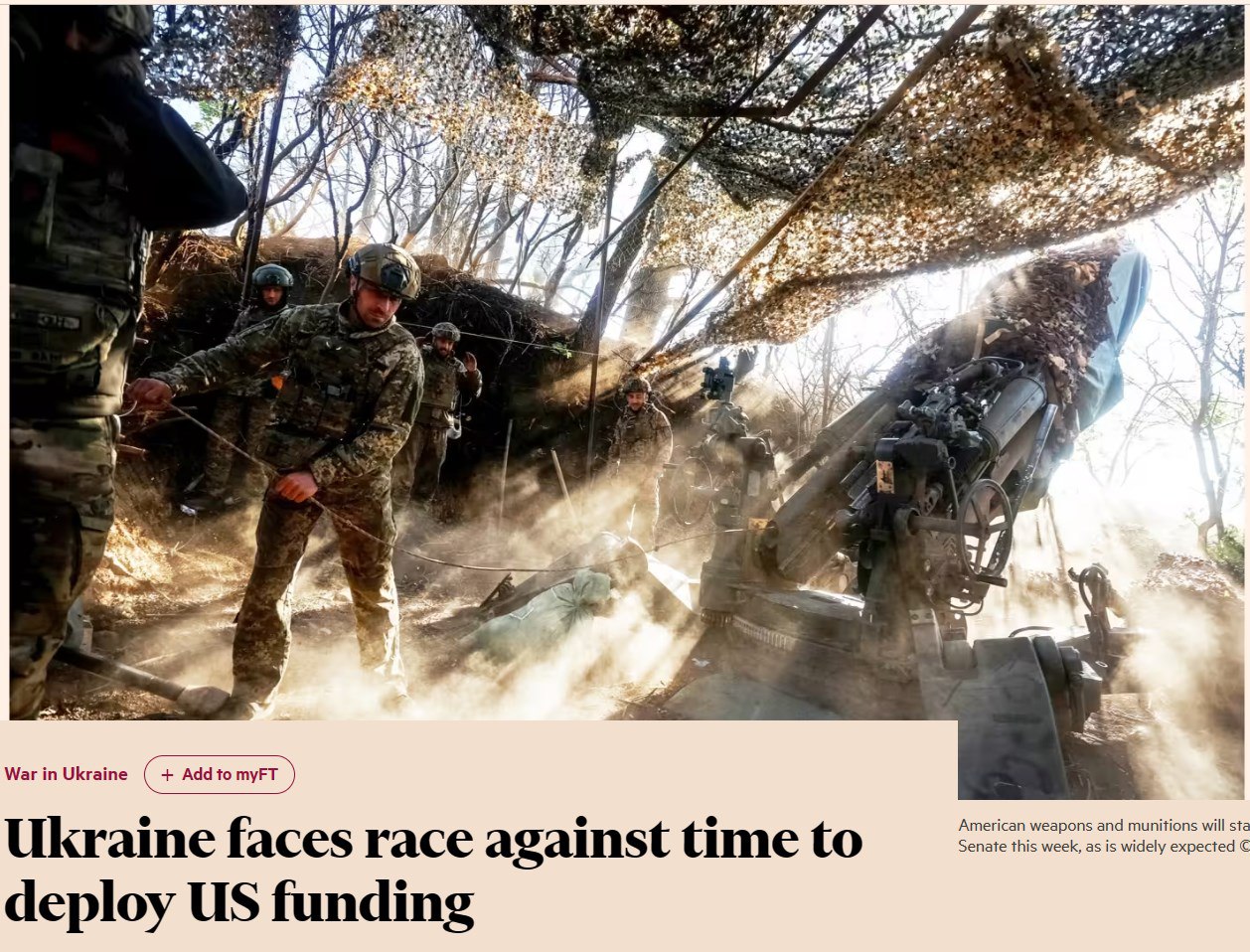 Financial Times, із посиланням на високопоставленого українського чиновника, пише, що американська допомога "допоможе сповільнити наступ Росії, але не зупинити його".