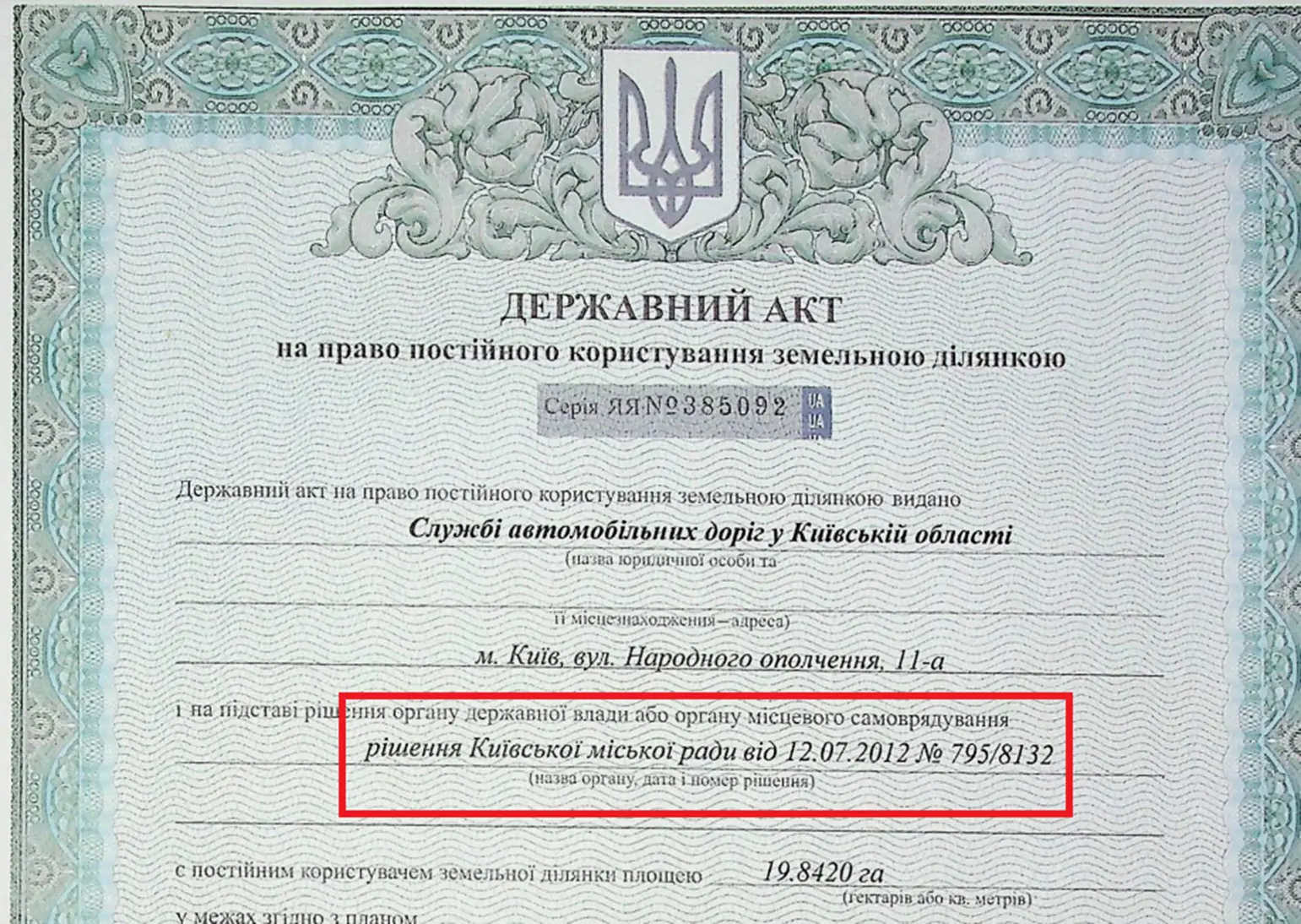 “Укравтодор” у 2011 році направив листа комунальному підприємству “Київський інститут земельних відносин” і наголошував, що відповідно до доручення Київської міської ради просить зробити документацію із землеустрою щодо відведення земельної ділянки для будівництва цієї дороги.